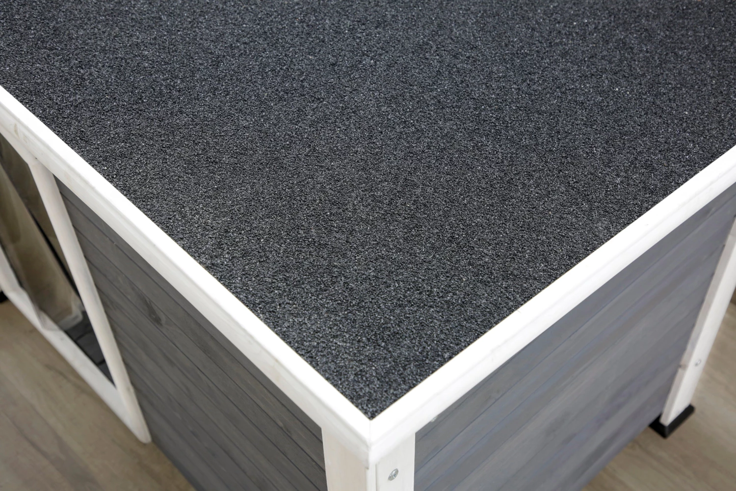 Give your dogs their own home and a place they can enjoy with the Kerbl Kennel Kenny. An easy to build dog house that looks great and provides shelter to your dogs when placed outside. The outer layer of the walls are glazed with a protective coat of wood colour and provides a contrast to the outer white frame. This creates an interesting and contemporary look. Manufactured from a heavy duty plastic to offer a secure and stable dog house. This creates an interesting and contemporary look. The roof used is made from a weather proof bitumen material to ensure that no rain enters the kennel, keeping dogs dry and warm. The curtain is a great feature of the kennel to shield the dog from harsh weathers, stopping the wind and rain.