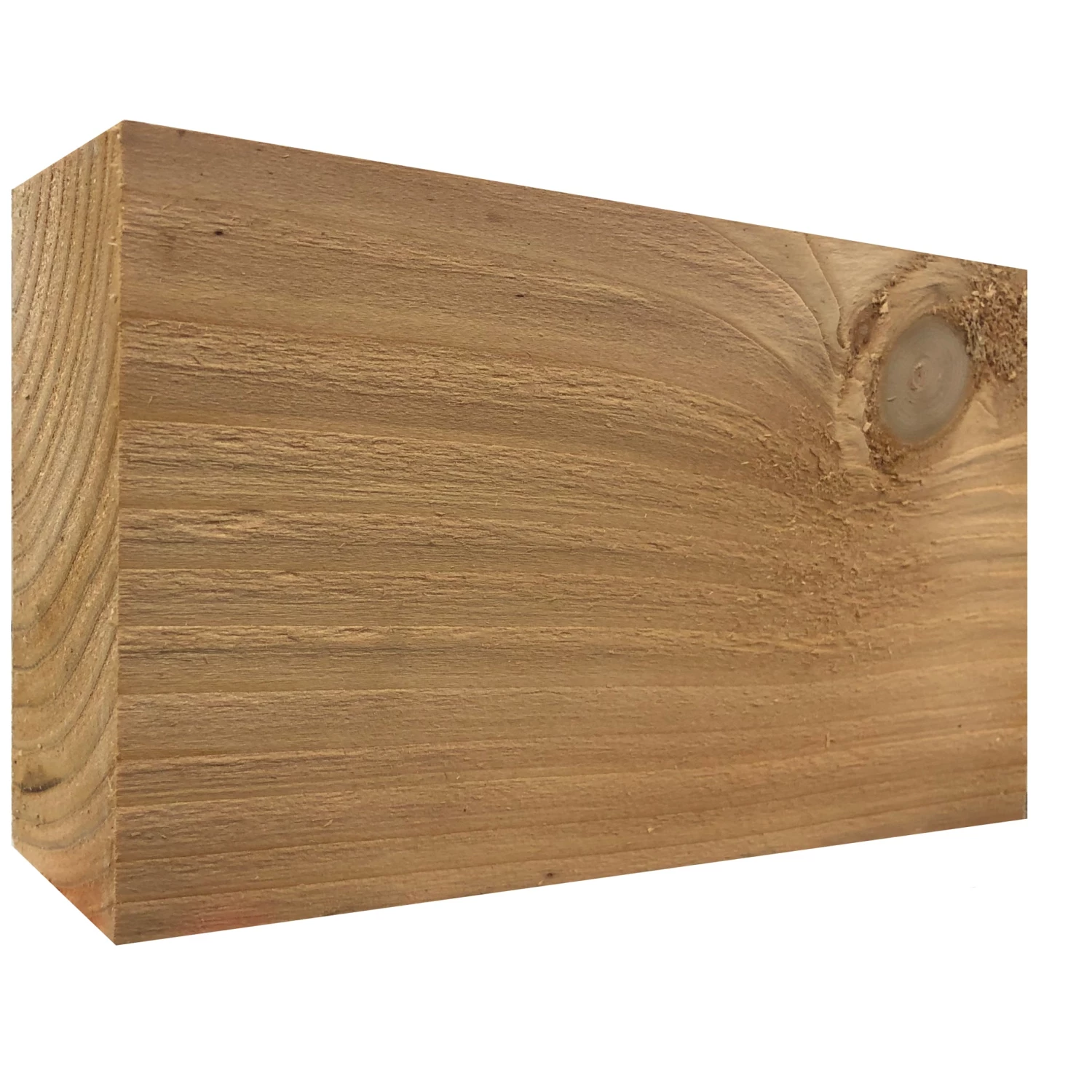 Home-grown cedar is much faster grown and has regular beautiful small & large knots sometimes up to 50mm and when machined can sometimes be slightly fluffy especially around knots.Â