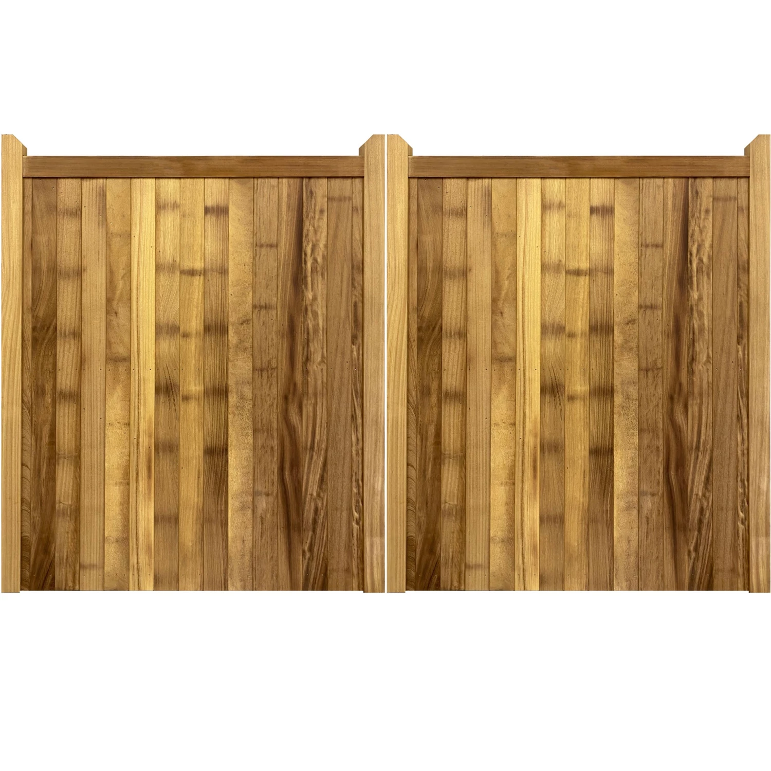 Expertly handcrafted by one of joiners here in the heart of the Devon countryside, we have our iroko Highampton entrance gates coming as a pair and each leaf measuring half of the total width. A simple, yet modern gate that will add an impressive and tasteful design to your driveways and front of homes. The iroko material is simply stunning with yellow and brown tones and beautiful natural grains throughout. Iroko derives from the west coast of Africa and is a super strong and hardwearing timber; the perfect species for driveway and entrance gates.Â